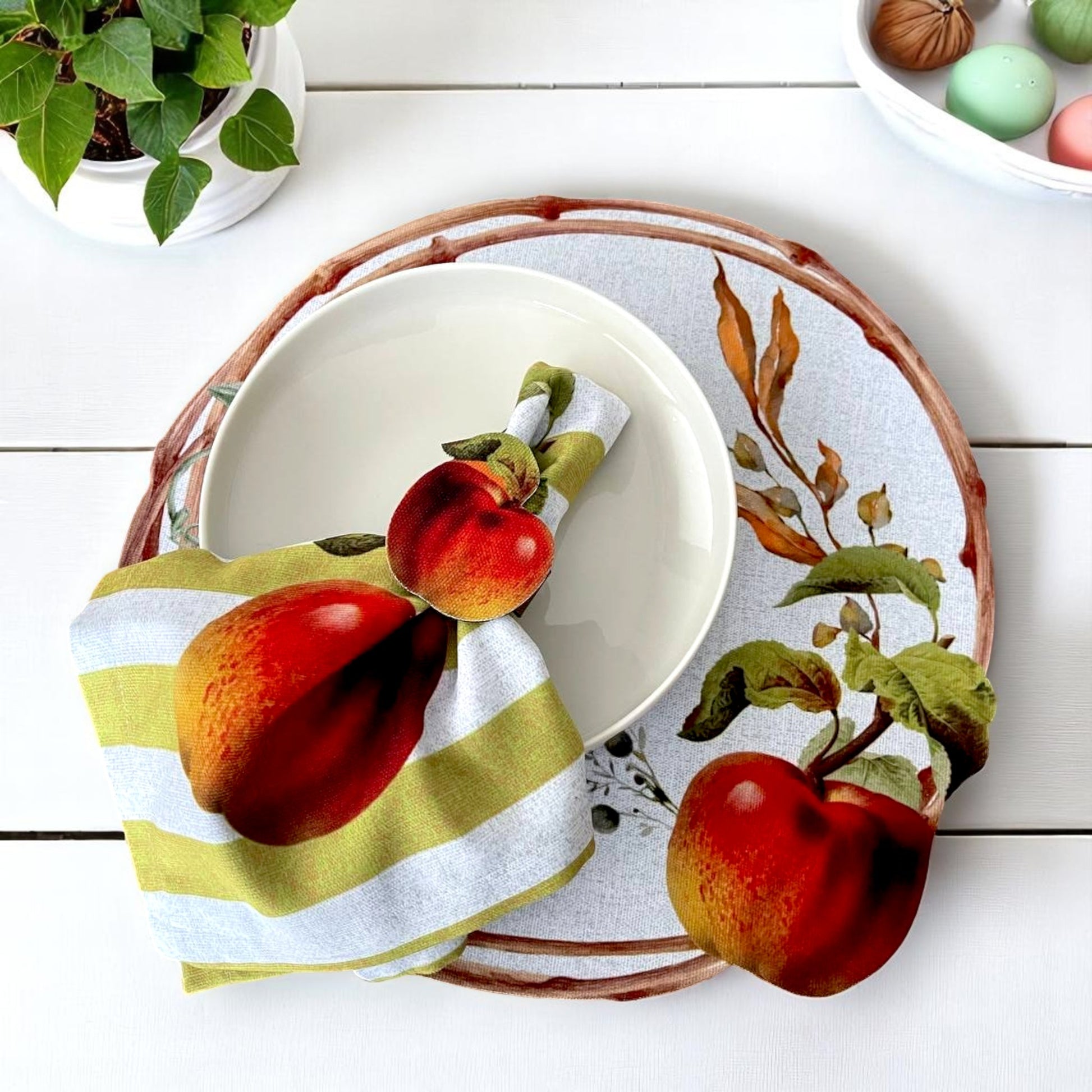 Set of 4 Apple Orchard Delight Placemat& Napkin and Napkin Ring Set- 3D-look print on high quality fabric