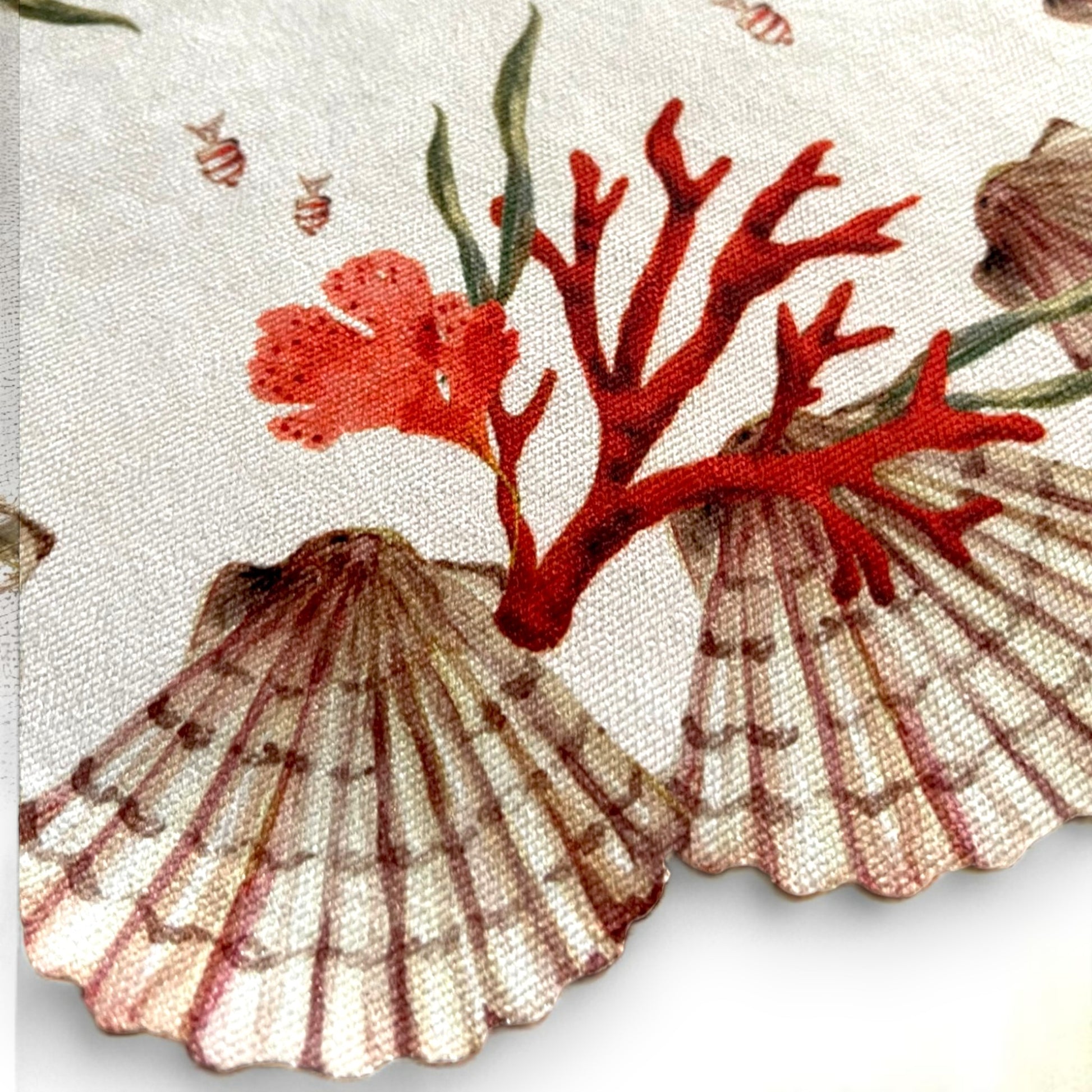 Set of 4 Coastal Seashell Placemat with Coral Napkin& Shell Ring| Ocean Theme Table Decor| Beach House, 3D-look print on high quality fabric