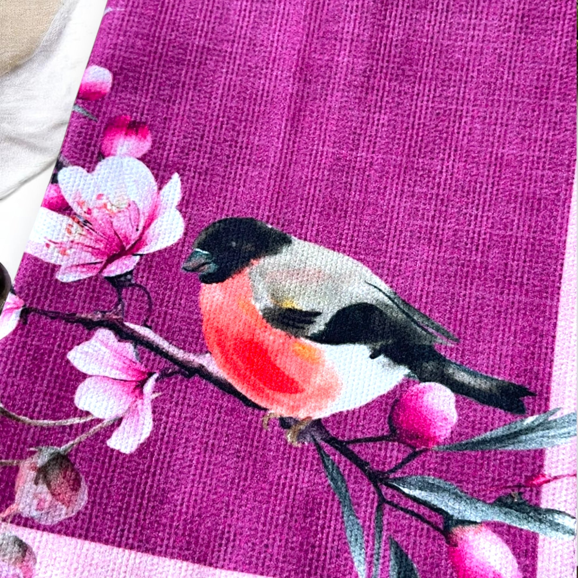 Set of 4 Peony Floral Placemat with Bird Napkin & Flower Ring | Romantic Table Decor Set | Purple Table Setting| 3D-look print on fabric
