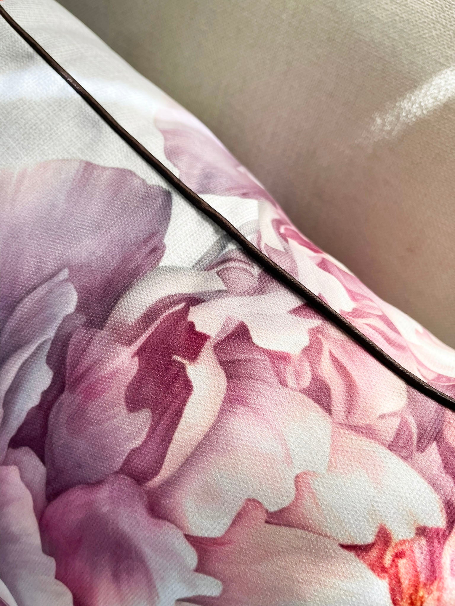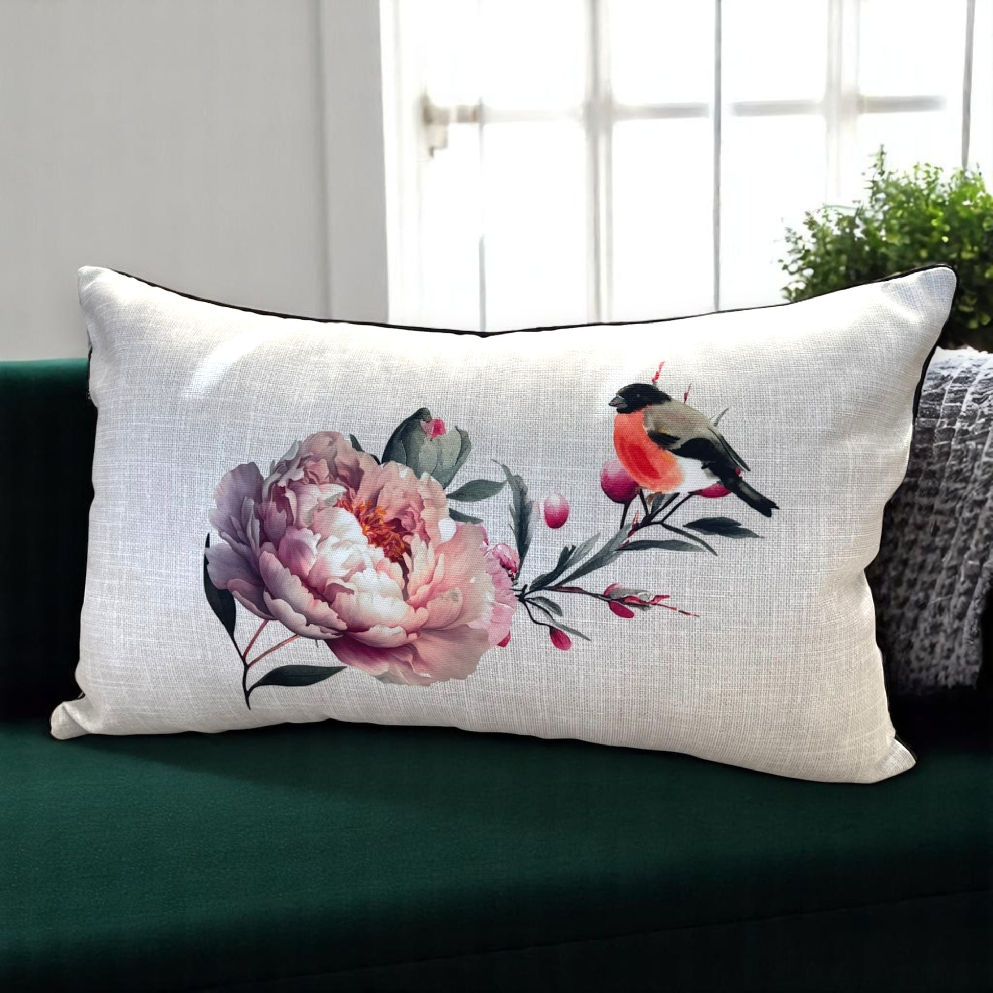 Bring blooming elegance to your home with our Peony & Bird Cushion Cover Set, a graceful blend of botanical charm and romantic detail. Featuring lush pink peonies and a delicate songbird on soft, linen-textured velvet-feel fabric, these covers add a cozy yet sophisticated accent to your sofa, bed, or reading nook.